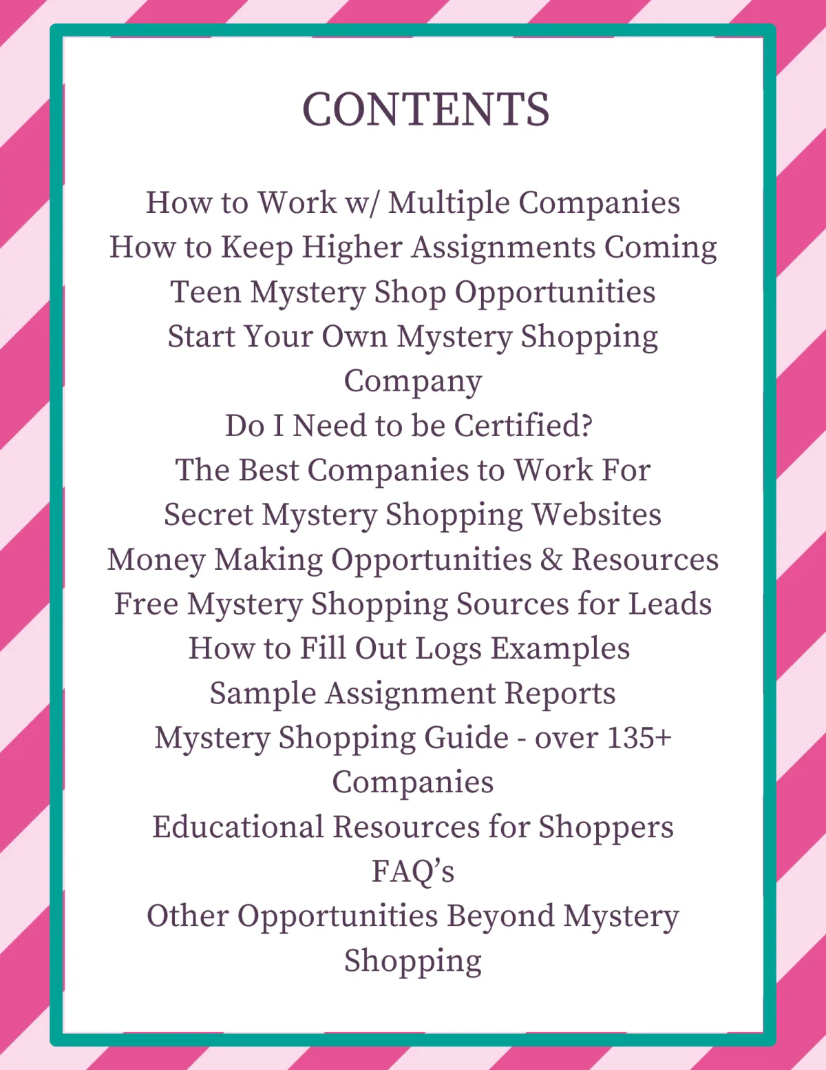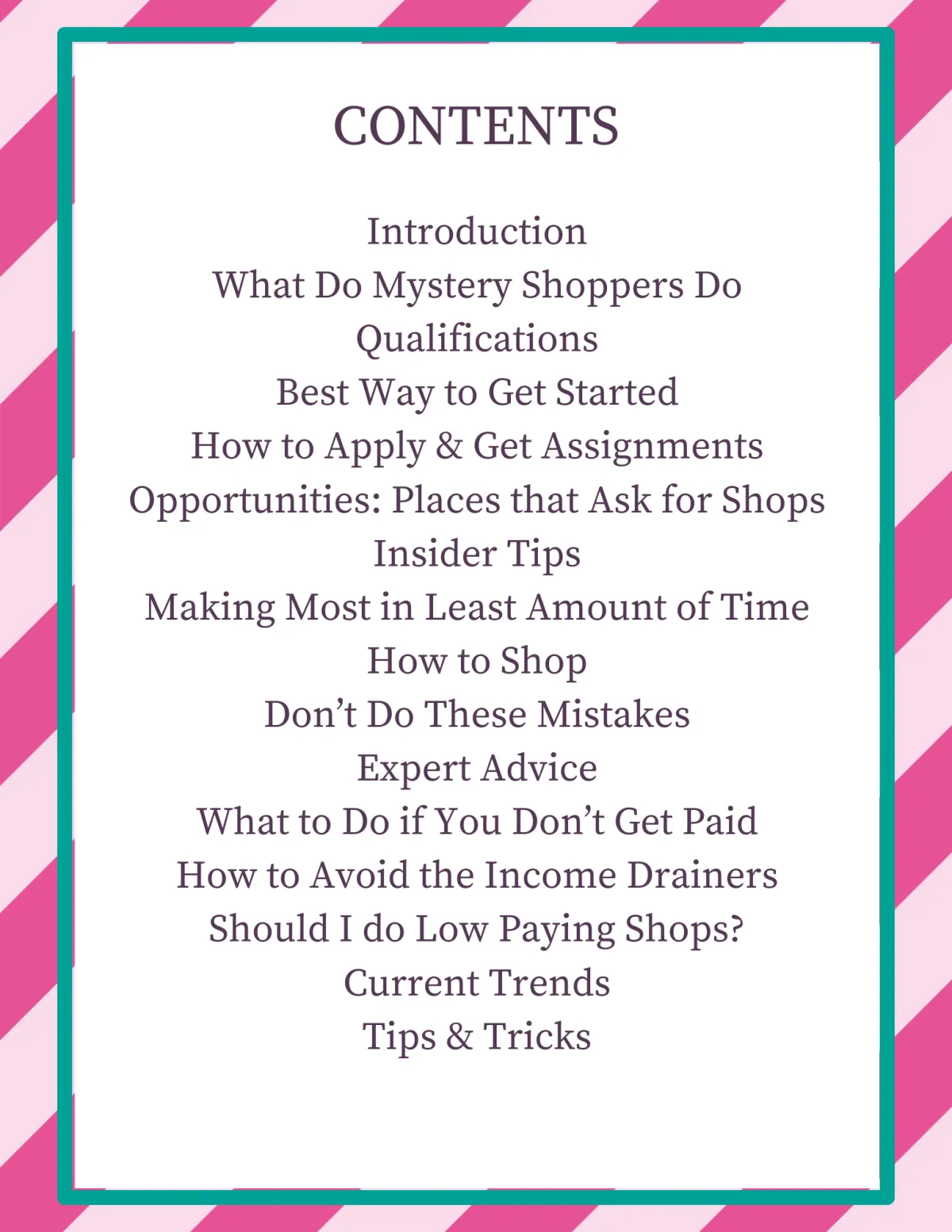Get everything you need to start getting paid to shop, dine, and enjoy experiences. With over 20 years of experience, I’m sharing my insider secrets to help you launch your mystery shopping journey quickly, easily, and successfully—no guesswork required!